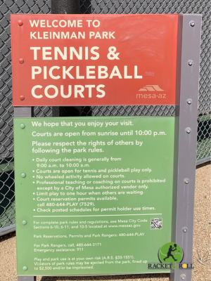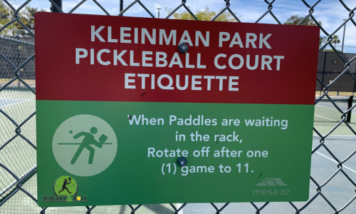 The Kleinman Park pickleball courts are located in Mesa near the old Fiesta Mall and not far from Mesa Community College. The park has quite a few amenities and is a favorite exercise spot for local residents.