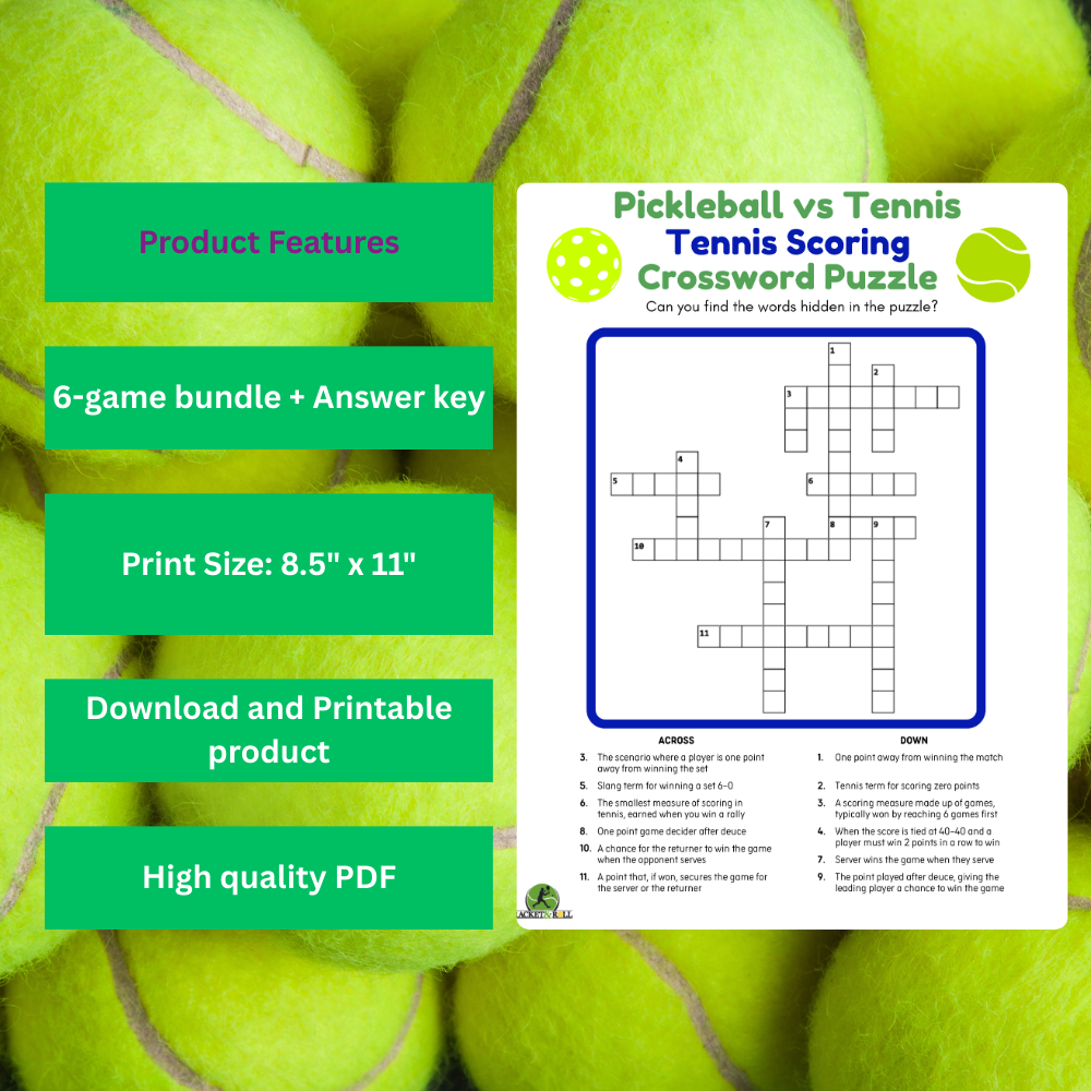 Celebrate the similarities, and the fun differences between pickleball and tennis with this engaging Pickleball vs Tennis Crossword Puzzle game bundle! This digital download includes 6 printable crossword puzzles with answer keys, thoughtfully designed to highlight how the two sports compare across rules, skills, shots, and scoring.