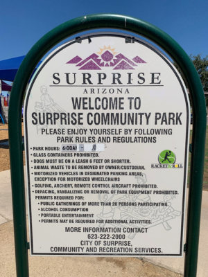 The Surprise pickleball courts are located in the City of Surprise, Arizona almost as far west as the city goes and right next to the Texas Rangers spring training stadium. The courts are in beautiful Surprise Community Park which must be on the list of one of the nicest parks in the City of Phoenix surrounding areas.